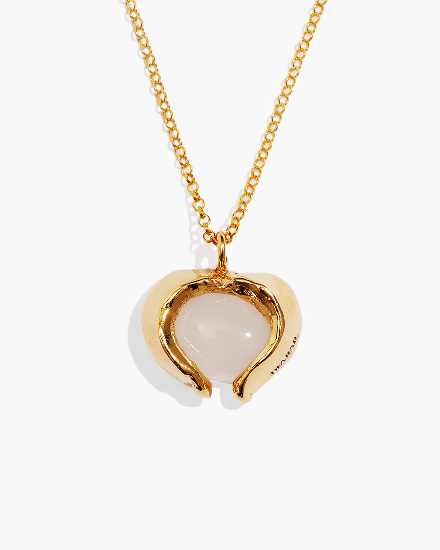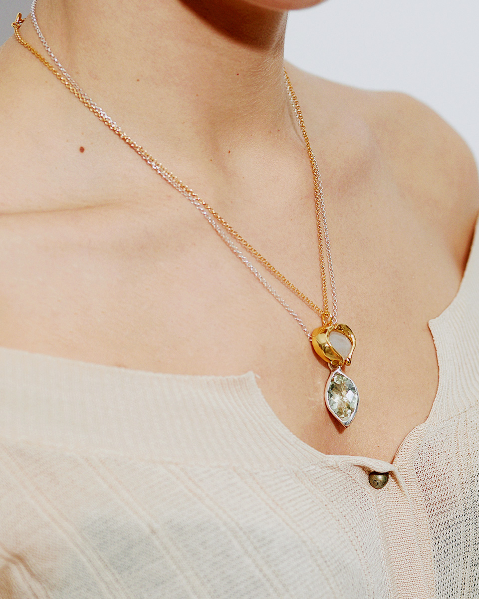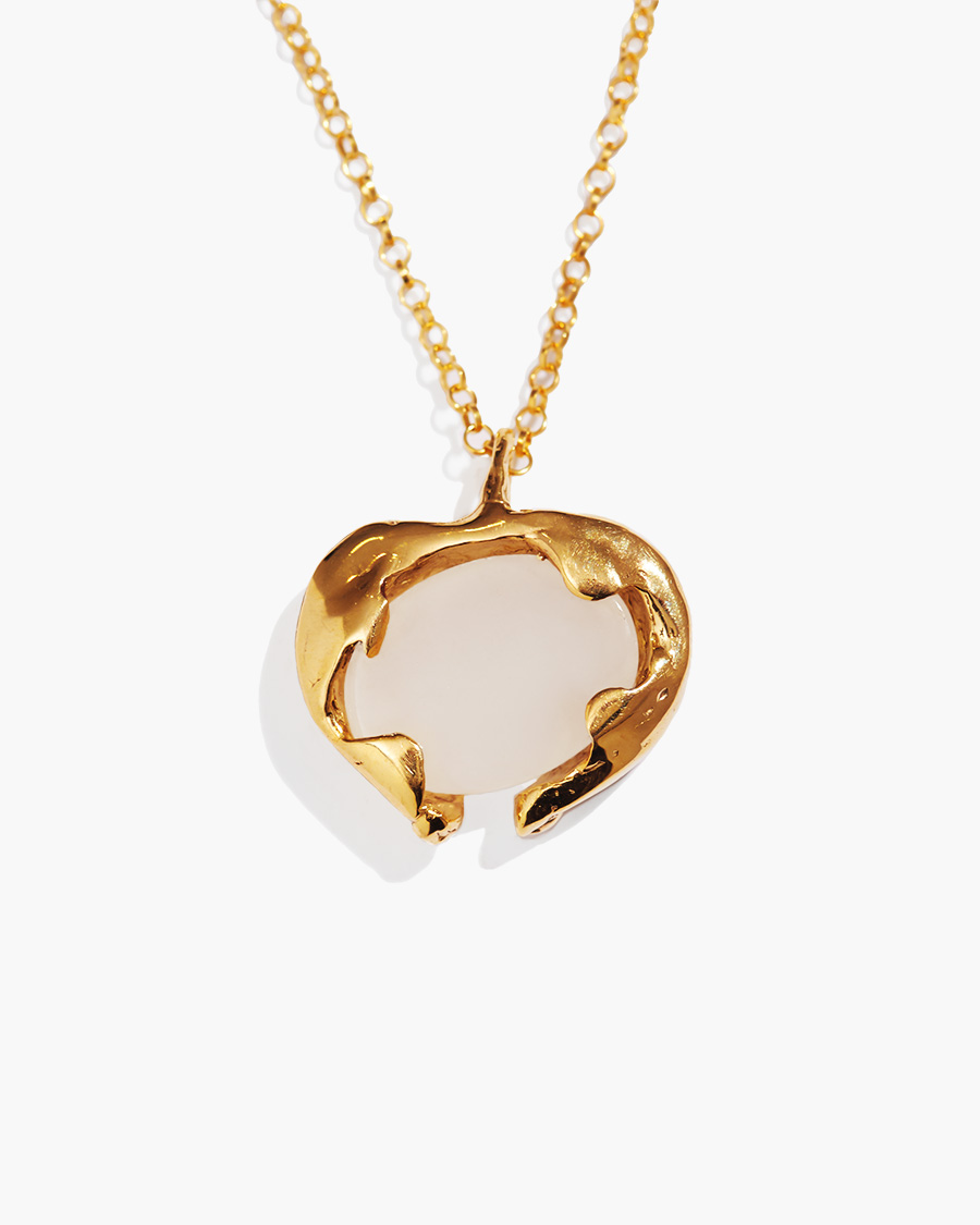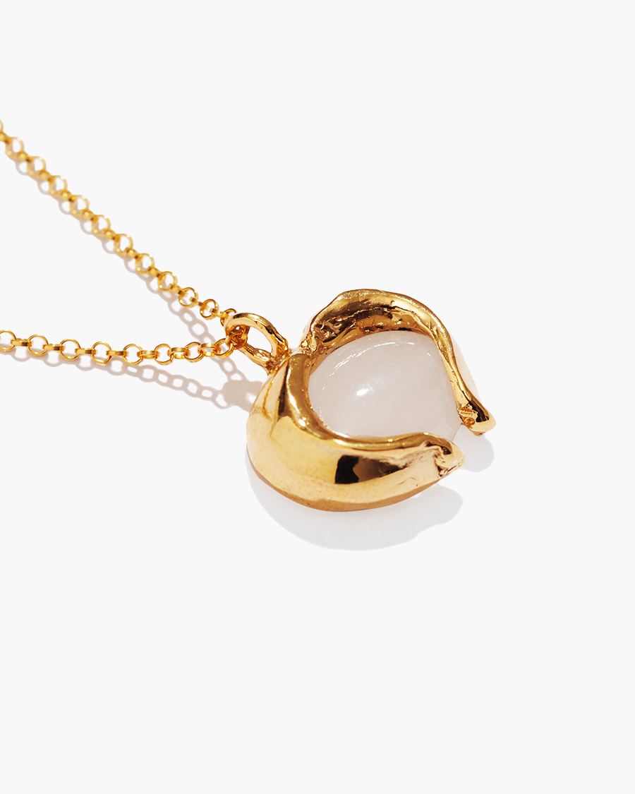 Inspired by the almond seed pod, Badam Pod reinterprets the pod’s form as a vessel of vital energy. The white jade — a stone linked to balance and inner strength — becomes a luminous core enclosed in metal: a talisman that preserves radiant energy.