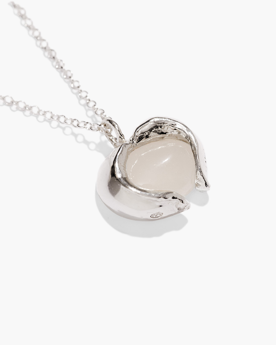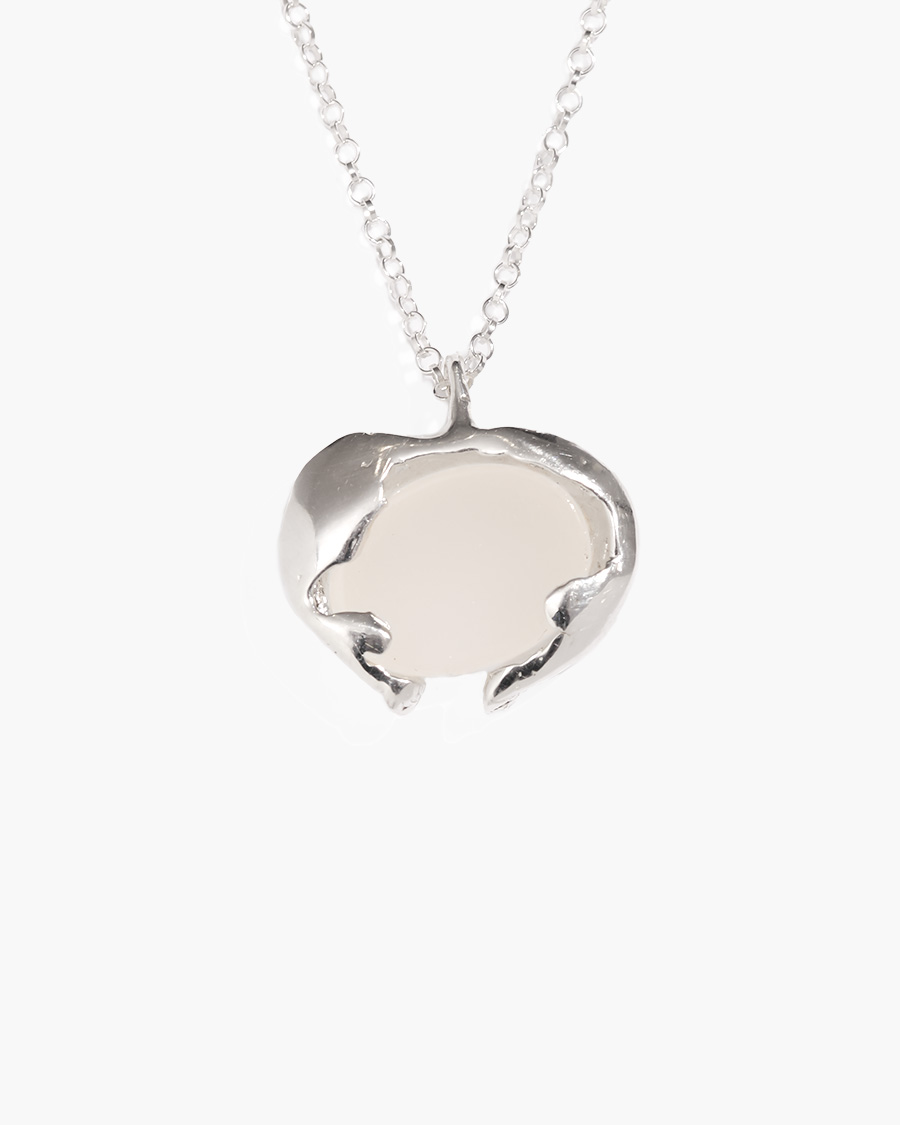 Pendant with white jade, hand-carved in sterling silver 925, mounted on a 45 cm chain.